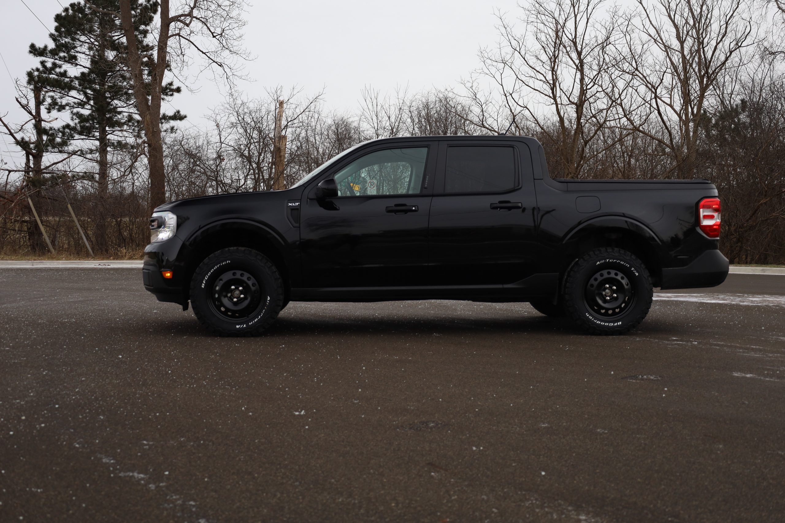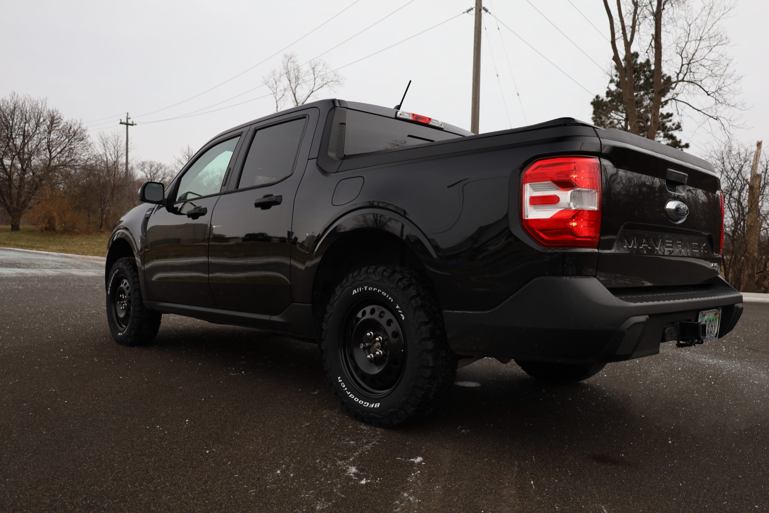 For Our Customer, we Choose 245/65/17 on some good-looking BF-Goodrich K02’s since he did not want to do any trimming to his Maverick.